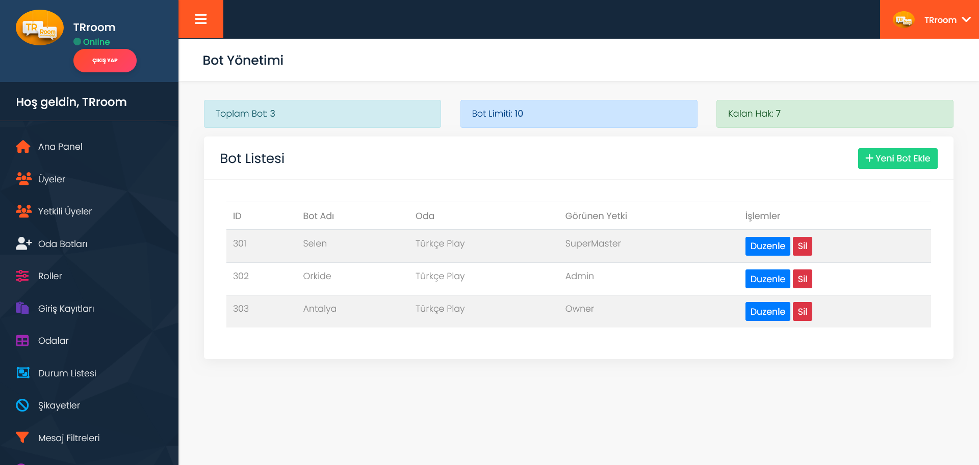 TRroom sohbet sistemi sayesinde kullanıcılarımızla anlık ve kesintisiz iletişim kurabiliyoruz. Hem mobil hem masaüstünde stabil çalışması bizim için büyük avantaj oldu.